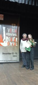 Στον τελικό κύκλο του Διεθνούς Διαγωνισμού Κιθάρας στα πλαίσια του 17ου Διεθνούς Φεστιβάλ Κιθάρας Βέροιας, που πραγματοποιήθηκε τον περασμένο Δεκέμβρη, η Δέσποινα Κωστογλούδη απέσπασε το Β’ Βραβείο στην κατηγορία της. Να υπενθυμίσουμε ότι η Δέσποινα ήταν η μοναδική Ελληνίδα που είχε προκριθεί και είχε κερδίσει μία από τις 13 θέσεις των φιναλίστ όλων των κατηγοριών, ενώ ήταν μία από τους 3 φιναλίστ στην κατηγορία της. Ο τελικός κύκλος πραγματοποιήθηκε δια ζώσης στη Βέροια την Κυριακή 15/12/2024.